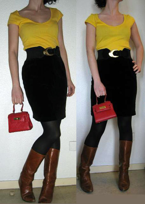 – la jupe taille haute en velours de ma maman est d’un confot absolu, et moi qui n’accroche pas toujours à la mode de la taille haute (je me sens engoncée), dans cette jupe je me sens vraiment femme et mise en valeur, car elle met vraiment l’accent sur les formes.