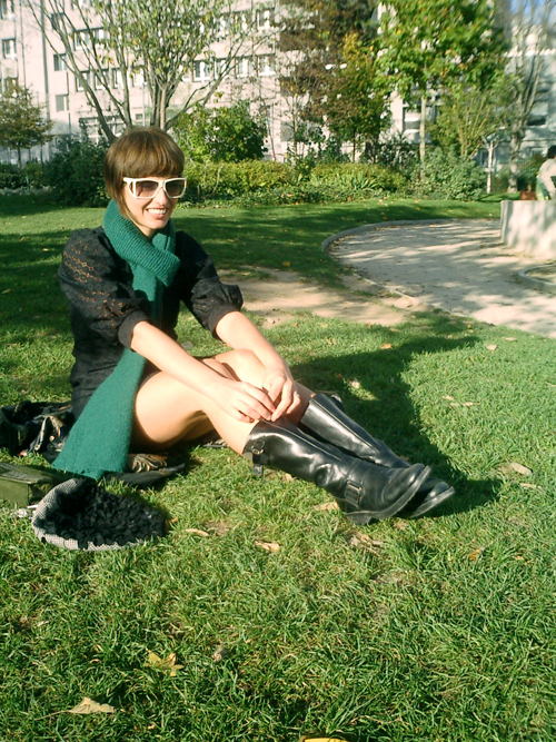 – mes bottes fauve vintage chinées dans une petite boutique rétro à Lyon, que j’adooooore, le bout mi-pointu mi-rond, la couleur, les empiècements de cuir, le talon façon vintage 80’s ou western. Il faut vraiment que je fasse refaire la semelle qui pren un peu l’eau, mais sinon elles sont génialissimes, même sous un pantalon !