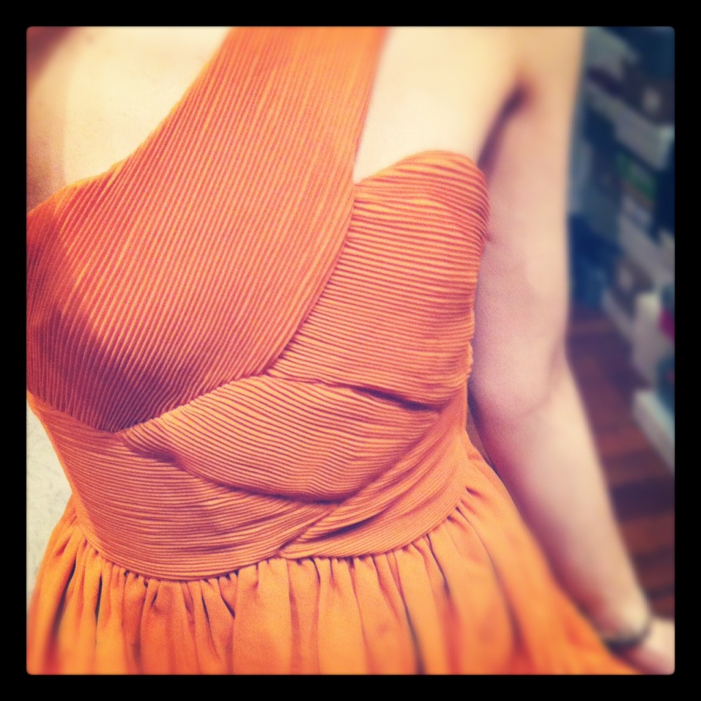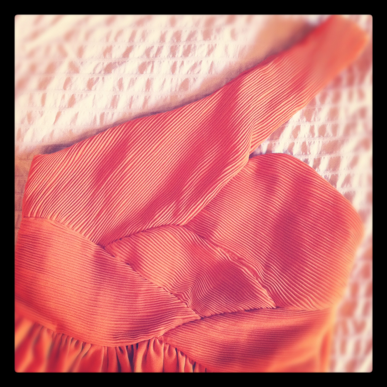 Le haut de la robe est vraiment super beau, avec son quasi patchwork de tissu plissé et sa bretelle unique asymétrique.