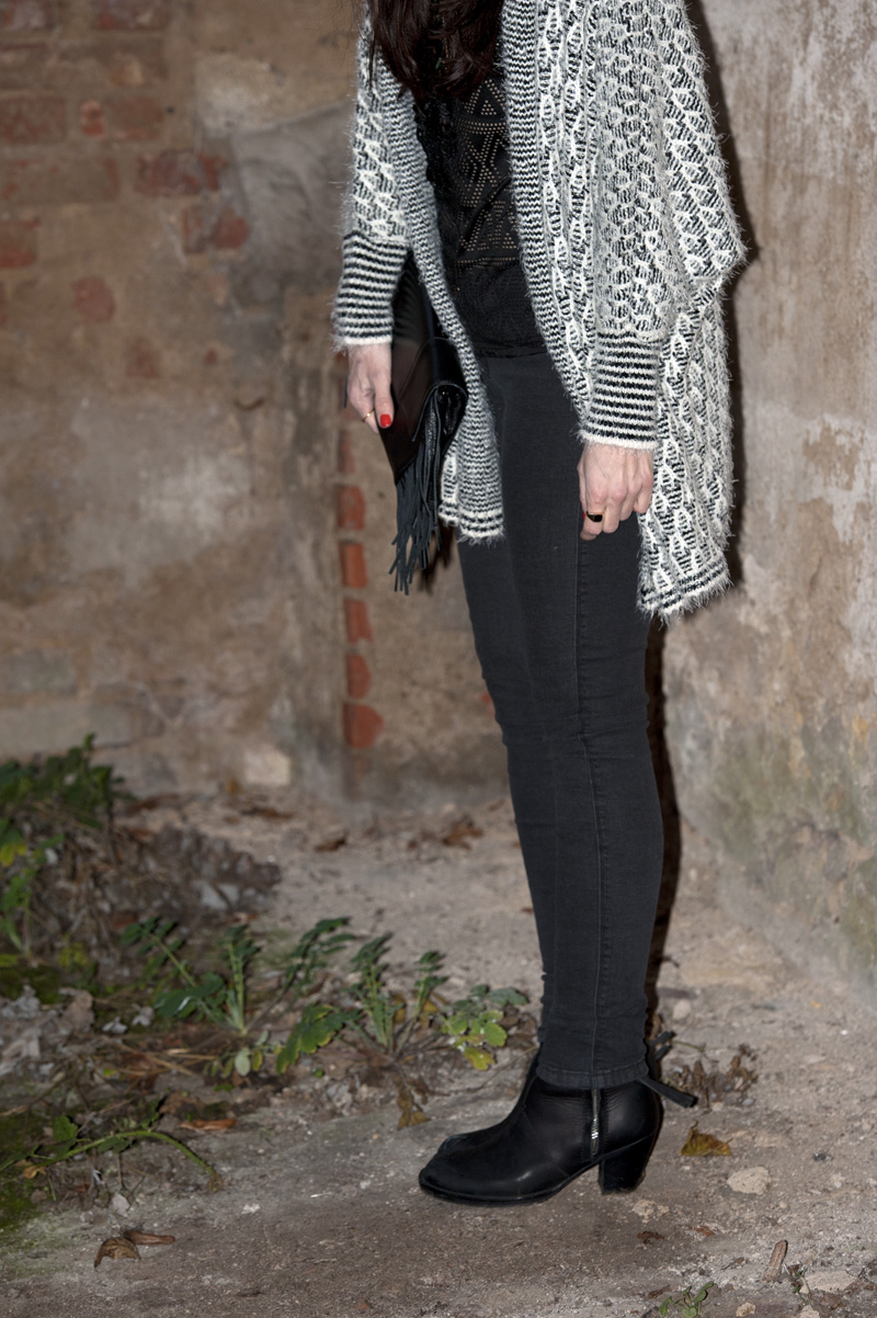 Moi ce jour là, c’était donc slim Dr Denim + gros gilet + top dentelle + boots fétiches = look 100% Punky b « comfy and a little sexy » friendly!