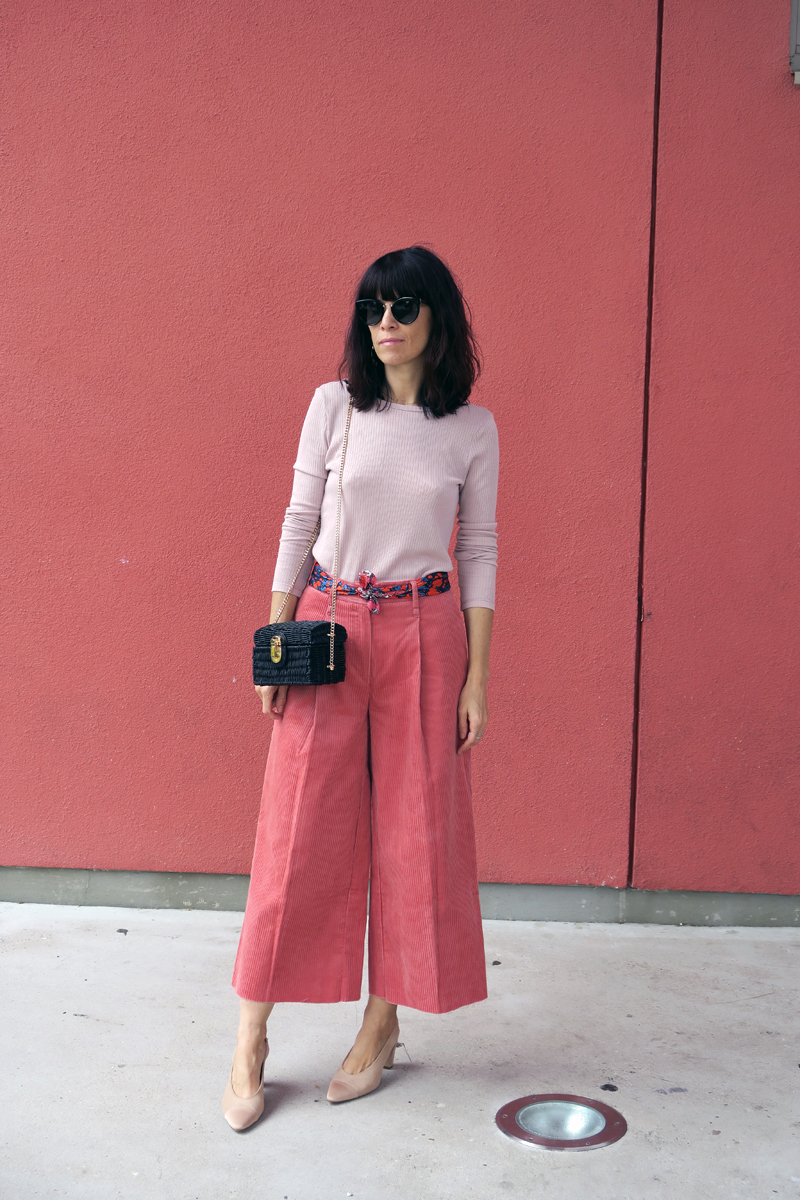 Ce pantalon large raccourci/jupe culotte en velours rose, vous allez en manger, oh yeah…