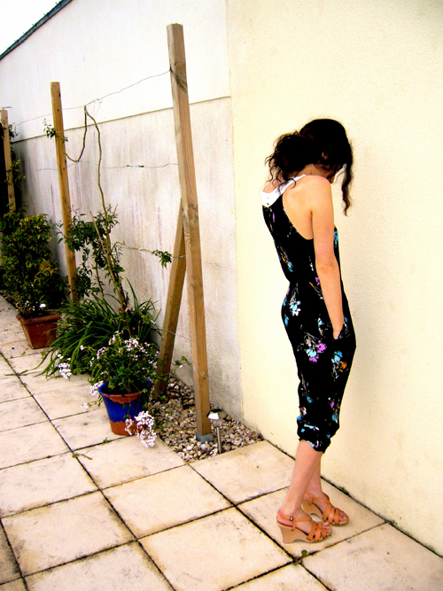 Comme je ne trouvais pas le modèle de mes rêves (je suis très exigeante), j’ai décidé de me le coudre, avec un coupon de Liberty commandé sur internet. Voici donc ma petite robe en Liberty, toute simple, avec des plis plats sur le devant. Pour un petit week-end à la campagne, elle devient très « champêtre », grâce à ma ceinture tressée préférée (Monoprix, même pas en cuir mais elle trompe bien son monde !), une paire de sandales New Look (bon d’accord on ne les voit pas sur la photo, mais si si elles sont très chouettes), et un chapeau de paille Urban Outfitters. Pour l’automne je la verrais bien avec des collants opaques et des low boots noirs, et un petit blouson en cuir, mais aujourd’hui il fait décidément trop beau ! »