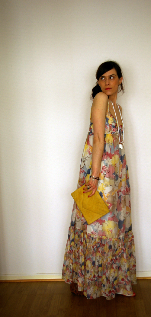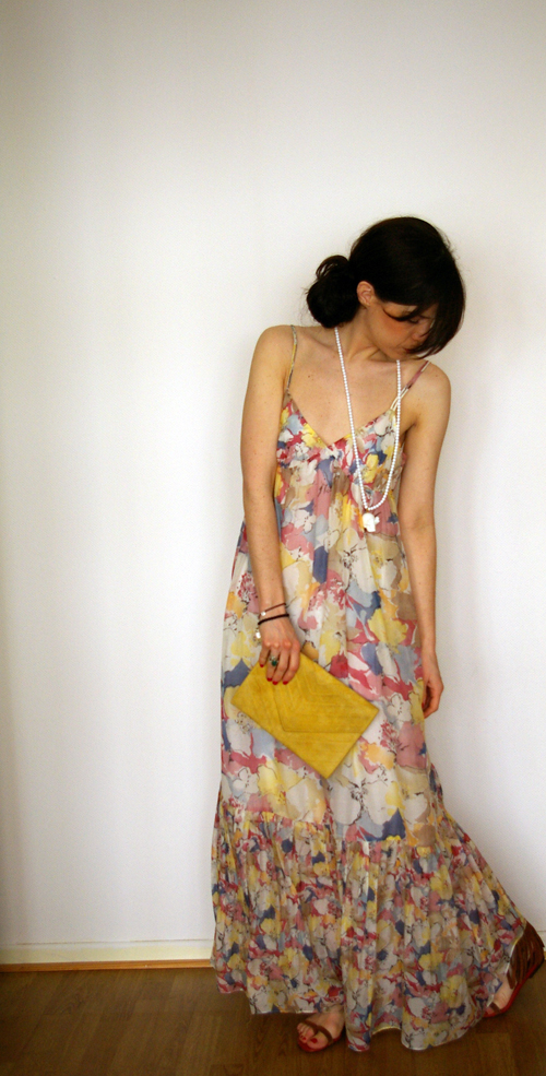 A la sauce simplement chic: avec un long sautoir doré H&M, des escarpins peep toe Gaspard Yurkievich et un sac vintage